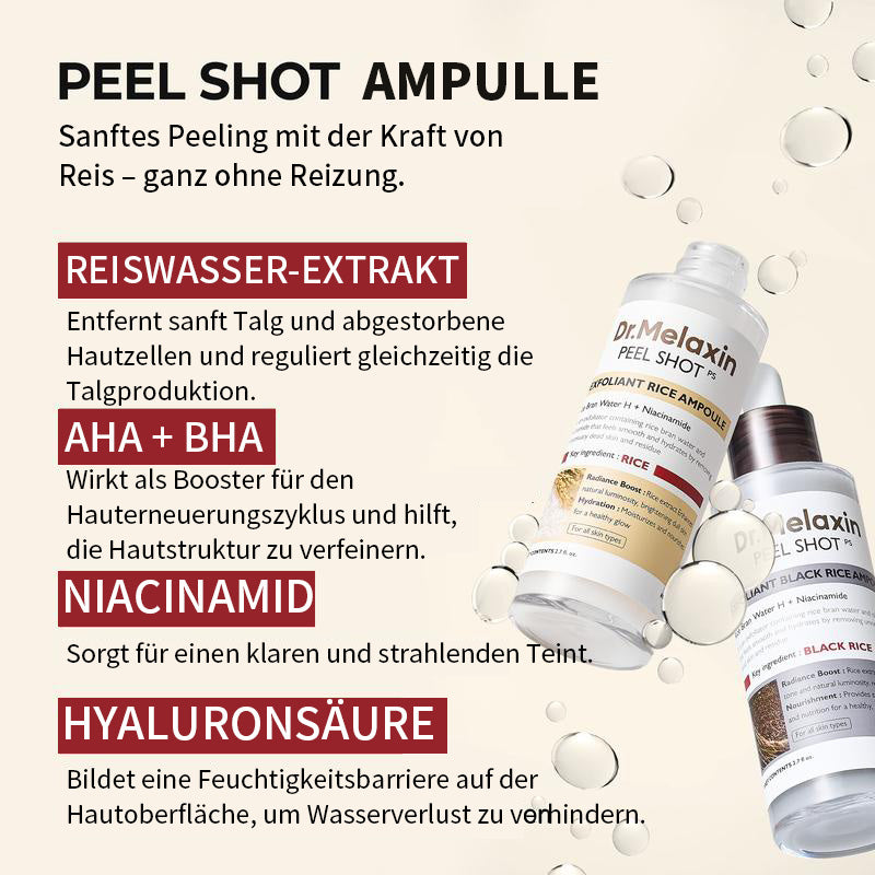 [Dr. Melaxin Official] Peel Shot Glow-Reis-Ampullen-Duo – Seren zum Aufhellen, Peelen und Befeuchten – Für alle Hauttypen geeignet